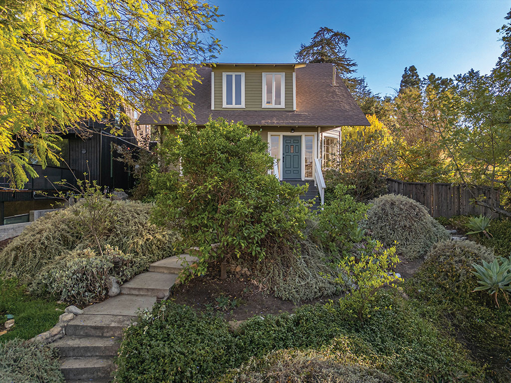 Nestled on a lush knoll above a quiet drive in the foothills of Highland Park’s Hermon enclave on the South Pasadena border, this refined, two story, 3 BR, 3 BA, 1905 Craftsman Farmhouse proudly holds court over its large double lot with glorious gardens and panoramic views of the San Gabriel mountains.