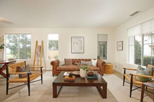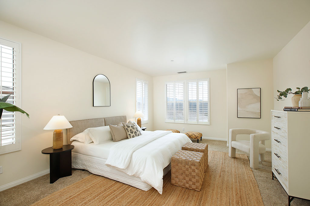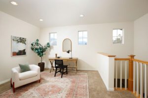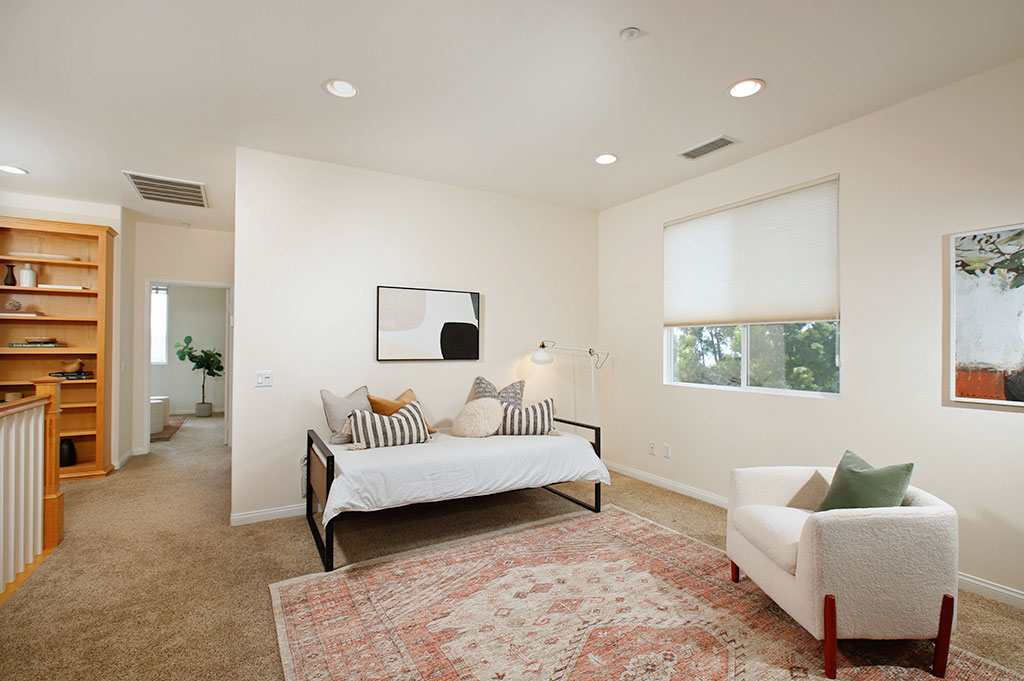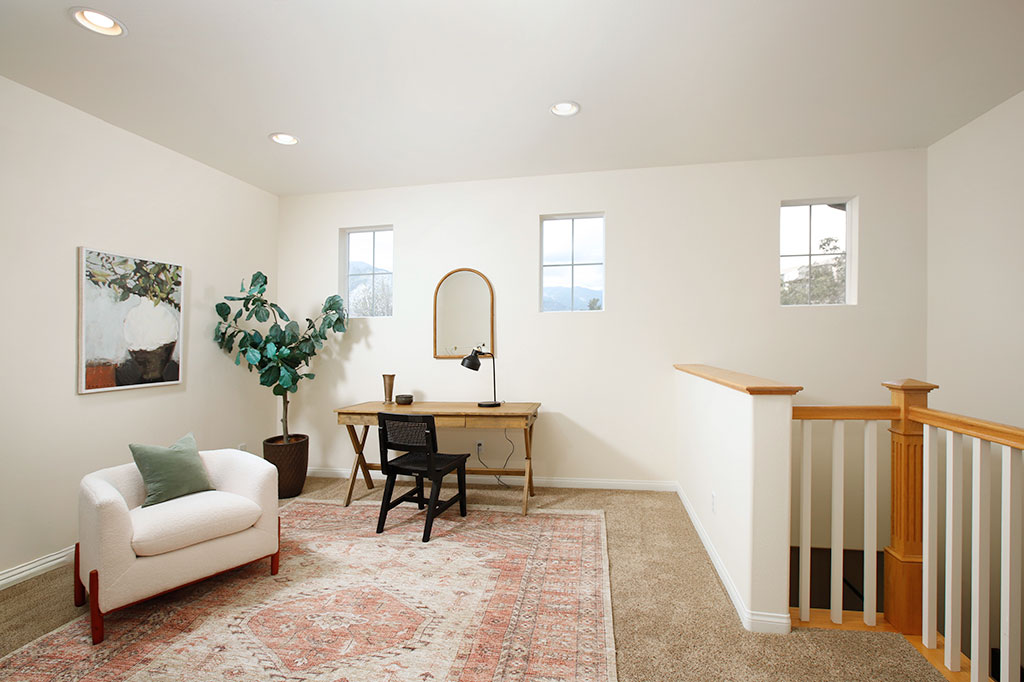 The two-story design is elegant throughout the four bedroom and three bath floor-plan of almost 2,800sf. The front entry opens to the formal living and dining rooms that are bathed in natural light. The bright kitchen is at the center of the home and opens directly to a large family room with a warm fireplace hearth. There is also a guest room down stairs that this Owner has used as a large home office with custom built-ins and a view over the rear grounds. Upstairs there are three large bedrooms, two baths, and another huge office space that could also flex as a guest bedroom as well. The primary is of course stunning with a huge primary bedroom, lovely primary bath with a large shower and soaking tub, and a large walk-in closet. The view at sunset from this primary suite is simply beautiful.