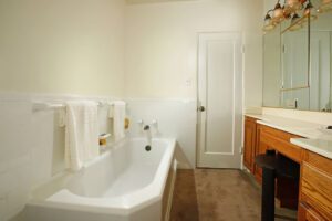 Leslie Hope selected this large parcel in 1936 on which to build this elegant one-story traditional just a short perambulation from Leslie Brand’s home and park.