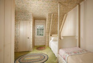 The front door welcomes one into a warm history of a family reading and laughing in this living room with just the light of the warm fireplace hearth. The original kitchen remains and opens to its bed and breakfast style kitchen nook. The dining room has seen many gatherings of guests and naturally opens to a very cool bar with slate flooring, an antique bar counter, and natural light via dozens of small panes of glass. A bedroom and bath complete this ground level. Upstairs there are three more bedrooms and a bath. The bedrooms all have interesting roof lines and tree top views via their charming princess dormer windows. There is also a secret artist’s sanctuary over the garage via a small door from the breakfast room. This creative space and its clever extra storage areas have been well utilized for decades.