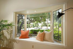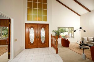 The formal entry opens to a two-story high formal living and dining room with an elegant bay window and a soaring beamed ceiling. Just off this entry is that home office with custom shelving and office storage. The bright kitchen opens to the large family room which is the center of the home with a warm fireplace and views out to the rear grounds. This ground floor also has two guest baths, and a large laundry room.