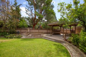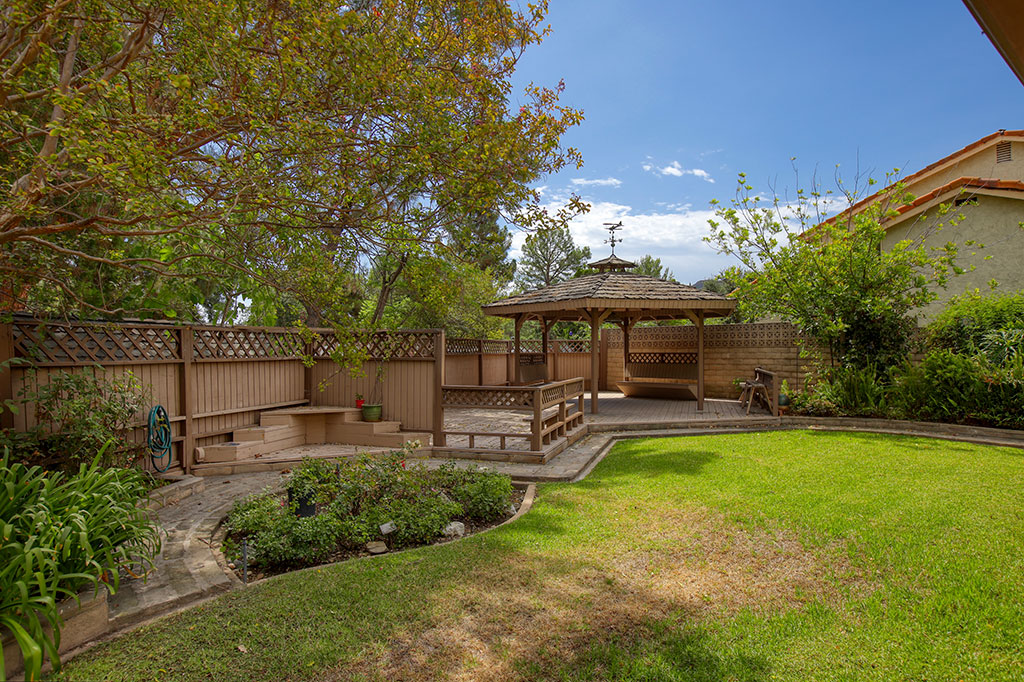 Upstairs there are four large bedrooms and two full baths. The primary suite is quite spacious with lovely views looking east, dual closets, custom built-ins, and a large primary bath. The rear yard is a surprise with a covered loggia, grass play yard, pampered gardens and a lovely gazebo under which to rest and enjoy the accomplishments of the day. Just a few of the features include an oversized covered balcony, side yard, storage shed, and a large two car garage with even more storage and a built-in work bench. And, of course, there are the award-winning schools of this sought after neighborhood.