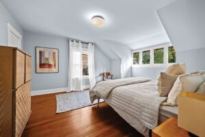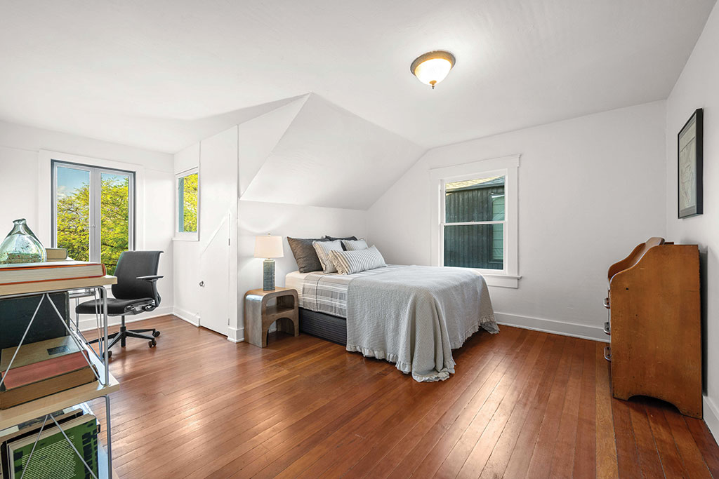 There is a second bathroom adjacent to the master bedroom, currently being utilized as a storage room, that could probably be restored and incorporated into an en suite.